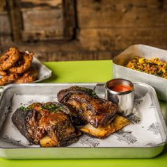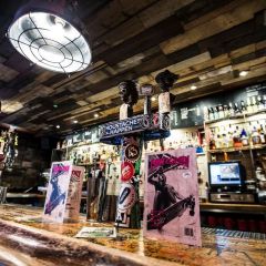 The Rib Joint & Tap Room on the ground floor is a relaxed hangout and a nod towards the 80s skate scene. The bar serves a large selection of bourbon, craft beer and ribs.